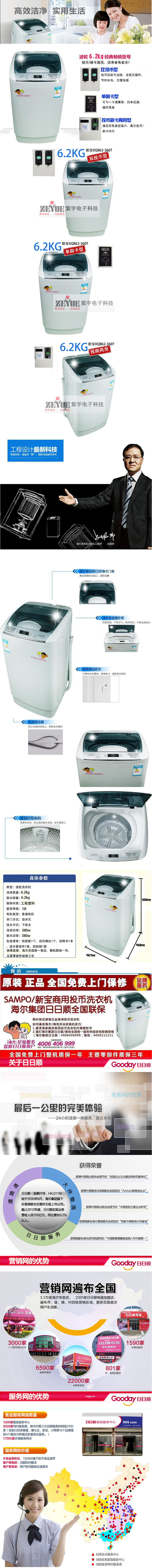 2. 新寶型號:XQB62-360T商用投幣刷卡洗衣機(jī),所需投幣/刷卡器,由吳江市紫宇電子科技有限公司提供配套。